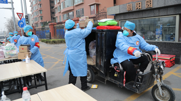 北京朝阳园小区:一线防疫人员当临时"骑手" 保障居民生活