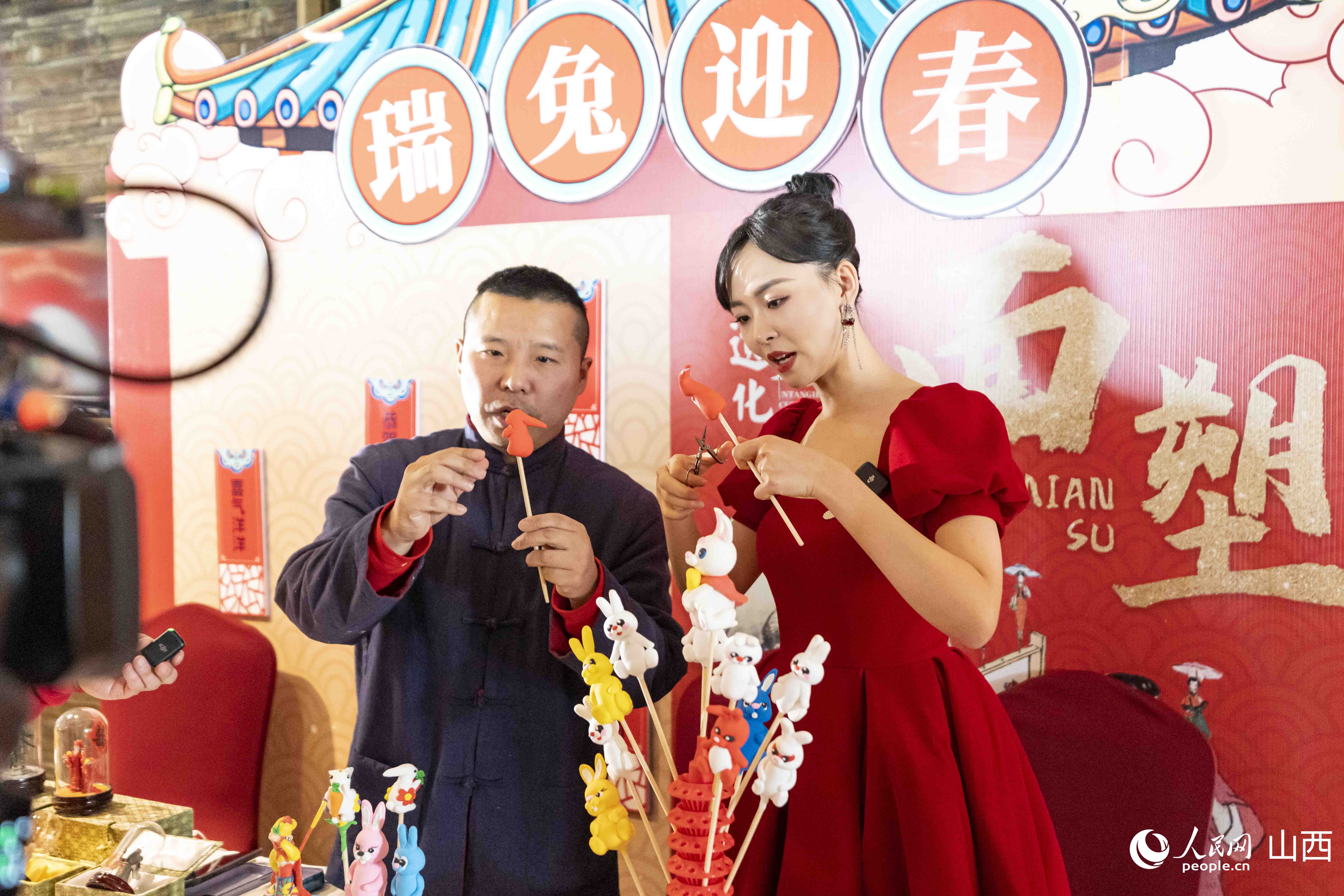在推介活动现场,精心布置了“新春市集”互动体验区、年俗非遗互动体验区、年俗节目快闪区等颇具山西特色文化的体验区域,营造了喜庆、热烈的春节氛围。剪纸、木板年画、糖画、面塑等项目,让现场嘉宾沉浸式体验山西非遗的独特魅力。在山西年俗表演快闪区域,舞狮表演、旱船等山西社火表演,让浓浓的年味迎面扑来。活动中,饱含山西大院文化符号、中国结等元素,寓意团圆美满的山西文旅兔年IP形象“晋小美”也首次亮相。