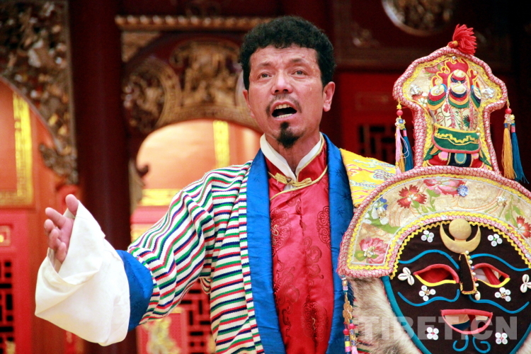 拉萨市城关区娘热民间艺术团成员、西藏自治区级觉木隆藏戏传承人洛桑次仁是目前为数不多的掌握了全部“八大藏戏”唱腔、表演的戏师。图为洛桑次仁表演藏戏唱腔《朗萨雯波》之贡桑德庆唱腔摄影:刘莉