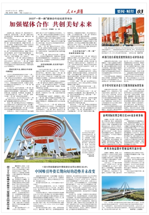 人民日报海外版:泰州国际医博会吸引近600家企业参加