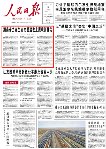 人民日报头版头条聚焦丨湖南奋力在生态文明建设上展现新作为
