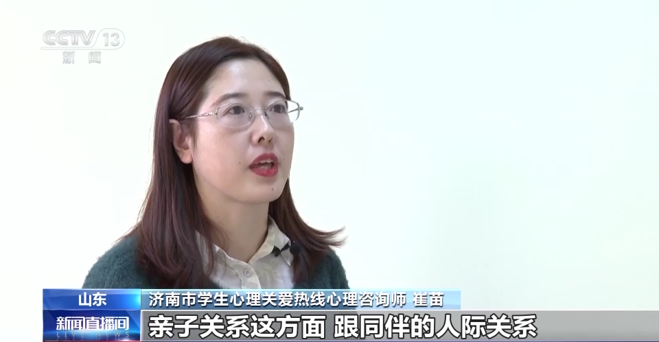 济南市学生心理关爱热线心理咨询师崔苗:问题的类型有很多,学习方面的压力、考试方面焦虑、亲子关系这方面、跟同伴的人际关系还有就是对于未来的期许,他有一些设想可能不被家长或者是老师理解。