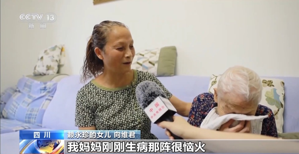 赖永珍的女儿 向维君:我妈妈刚刚生病那阵很恼火,因为坐也坐不稳,大小便什么都失能了。他们来了之后,给我们也减轻了很大的负担。他们来要给老妈按摩,要做手指操教她,我们之前根本就没做过那些。