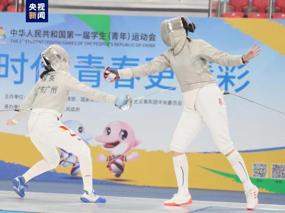 11月7日,第一届全国学生(青年)运动会击剑男女佩剑团体决赛在广西体育局三塘体育训练比赛基地综合体育馆进行,南京队和广州队战胜各自对手夺得金牌。