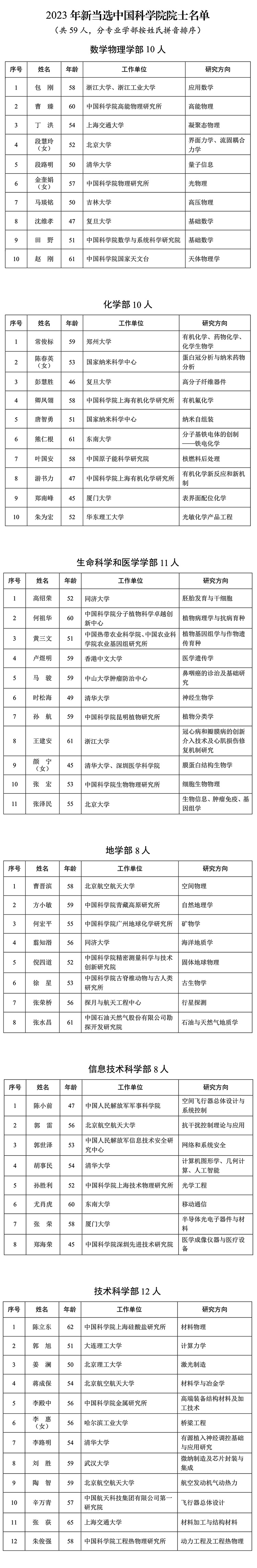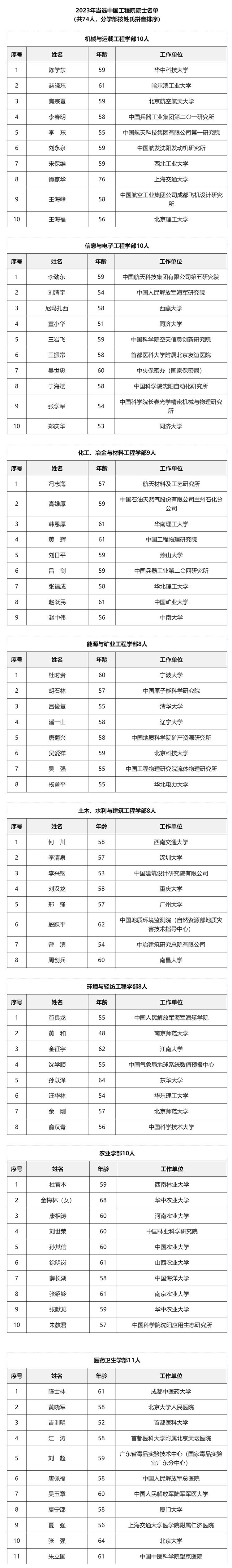 央广网北京11月23日消息(记者 郭彦伟)11月22日,中国科学院、中国工程院公布2023年院士增选结果。2023年中国科学院选举产生了59名中国科学院院士,中国工程院2023年院士增选共选举产生74位中国工程院院士。