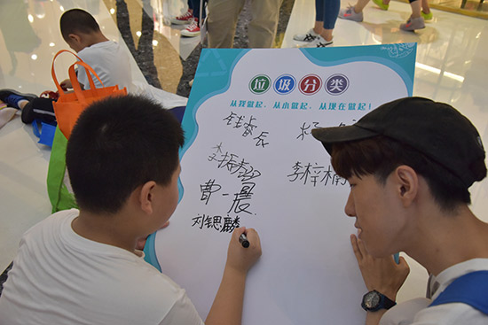 除此之外,活动现场还安排了垃圾分类小游戏,让孩子们在游戏的乐趣当中了解垃圾分类知识,增强青少年的绿色环保意识。活动最后,孩子们把照片贴在活动展板上,进行了环保宣誓并签名。