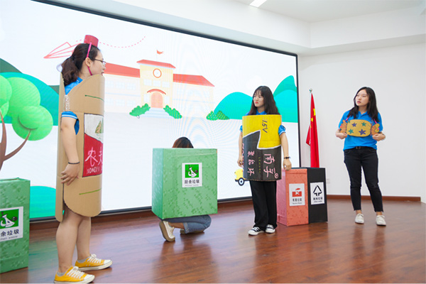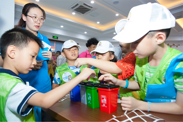 近日,天津市印发《推进生活垃圾分类工作的实施方案》,以提升生活垃圾“减量化、资源化、无害化”为总目标,深入推进垃圾不落地和生活垃圾分类。活动中,天津商业大学“绿色践行者”暑期社会实践团的同学们通过生动活泼的情景剧《垃圾奇遇记》,向小小环保志愿者们讲授垃圾分类的知识,为孩子们树立保护环境、节约资源的理念。小小环保志愿者们通过垃圾分类小游戏向社区群众们分享垃圾分类知识,将“垃圾分类、从我做起”的理念传递给更多人。