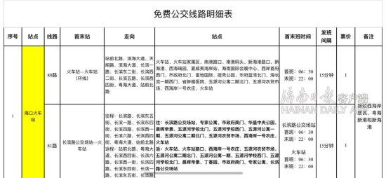 6月29日-7月4日海口8市域列车接驳公交线路免费坐