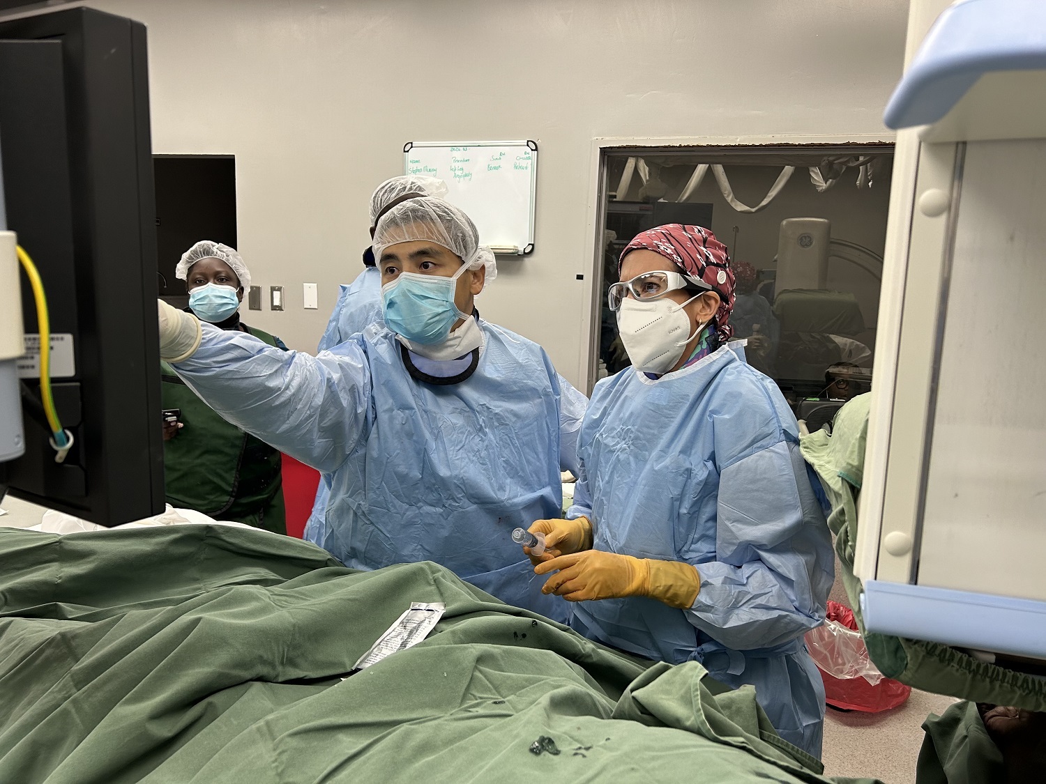 刘丽萍(左一)开展巴巴多斯第一例超声造影技术
