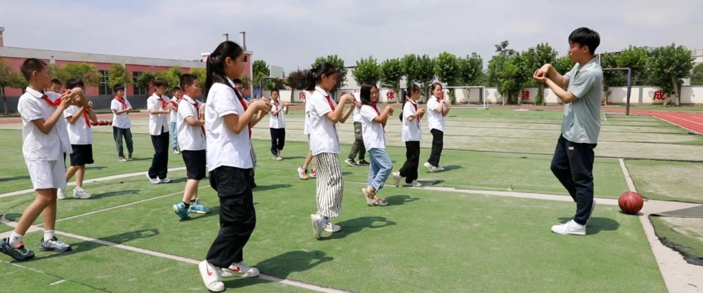 来自西安体育学院的学生米灵通和刘锦东将韵律操、羽毛球、乒乓球等多种体育项目带入陕西西安兆丰桥小学,让孩子们享受运动的乐趣。