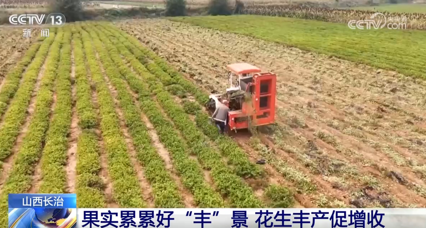 在长治市潞城区花生种植基地里,随着花生联合收获机的阵阵轰鸣,一株株花生从土壤中被轻松拔出,并通过内置的机械装置自动完成摘果、分离、清选等工序,一次性完成收获。