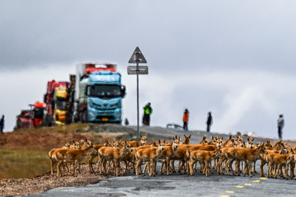 70年过去,青藏公路与可可西里这片土地早已“融为一体”。青藏公路3001、3002公里处,是可可西里藏羚羊迁徙的重要通道。每到藏羚羊迁徙产仔季,在可可西里工作人员的指挥下,来往车辆会在这里自觉排成长龙,在远处默默等待,为“高原精灵”让路。