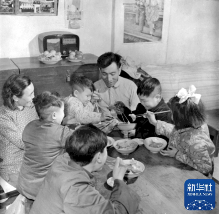 20世纪60年代初,辽宁鞍钢老工人于德举一家在吃年夜饭。为过年准备一顿丰盛的饭菜是当时人们颇费脑筋的事。新华社记者 苗明 摄