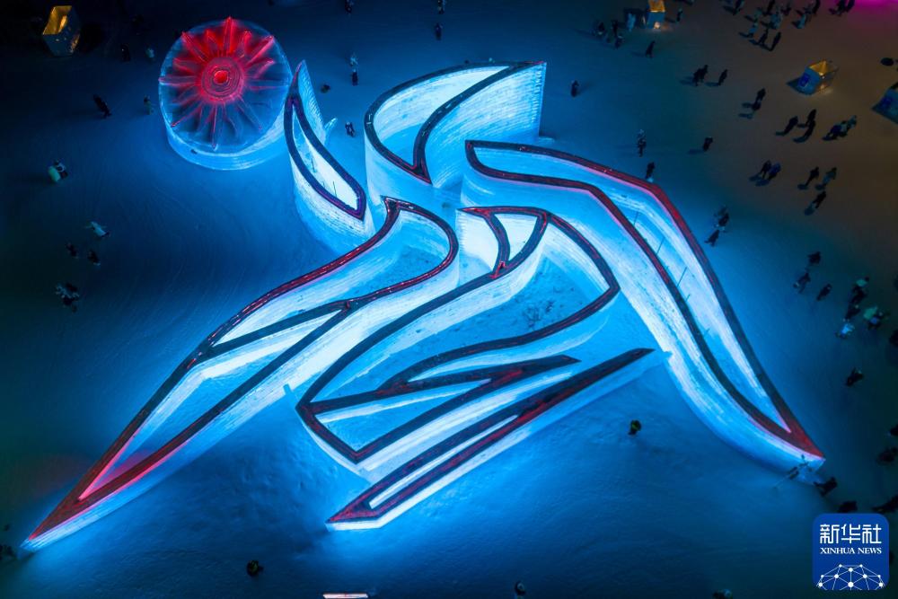 这是2025年1月5日拍摄的第九届亚冬会会徽冰雕。新华社记者 张涛 摄