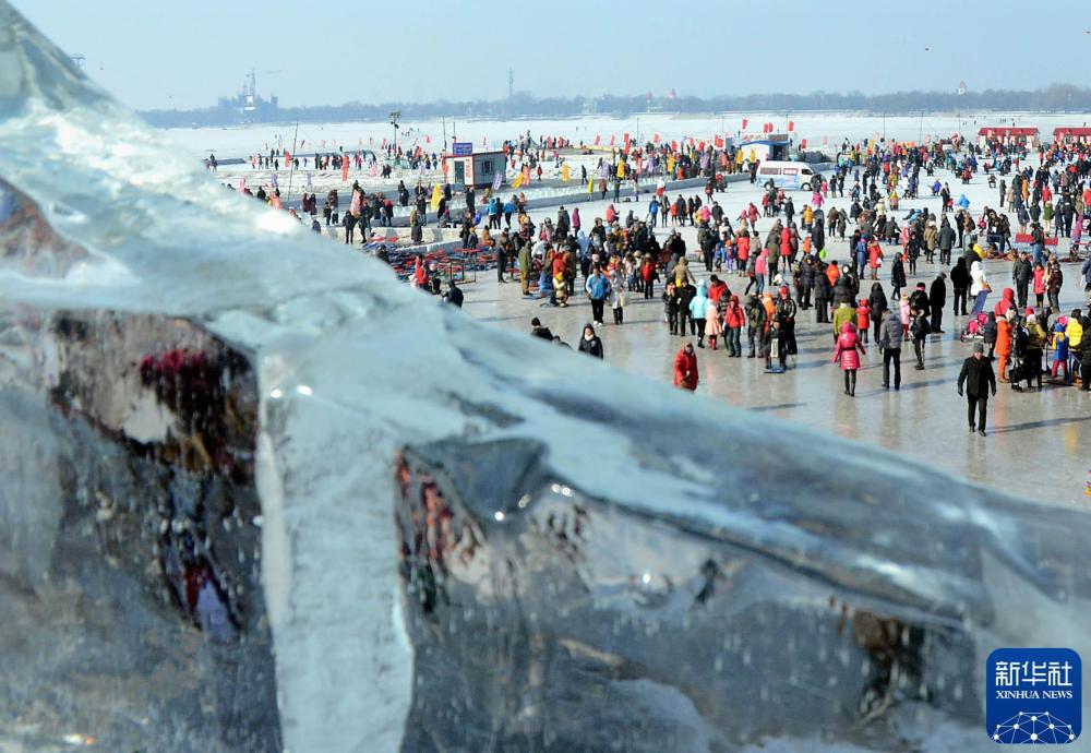 2013年2月15日,在黑龙江省哈尔滨市的松花江江面上,大批市民和游客在滑冰游玩,享受冰雪运动带来的乐趣。新华社记者 王颂 摄