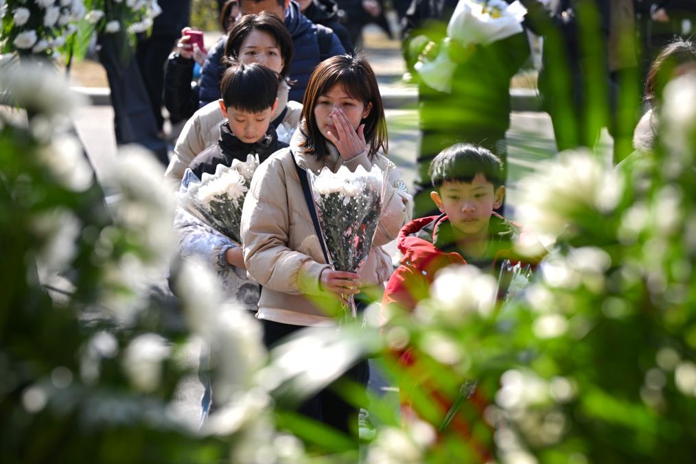 2025年2月7日,在上海交通大学闵行校区,师生在追思活动现场默哀。新华社记者 刘颖 摄