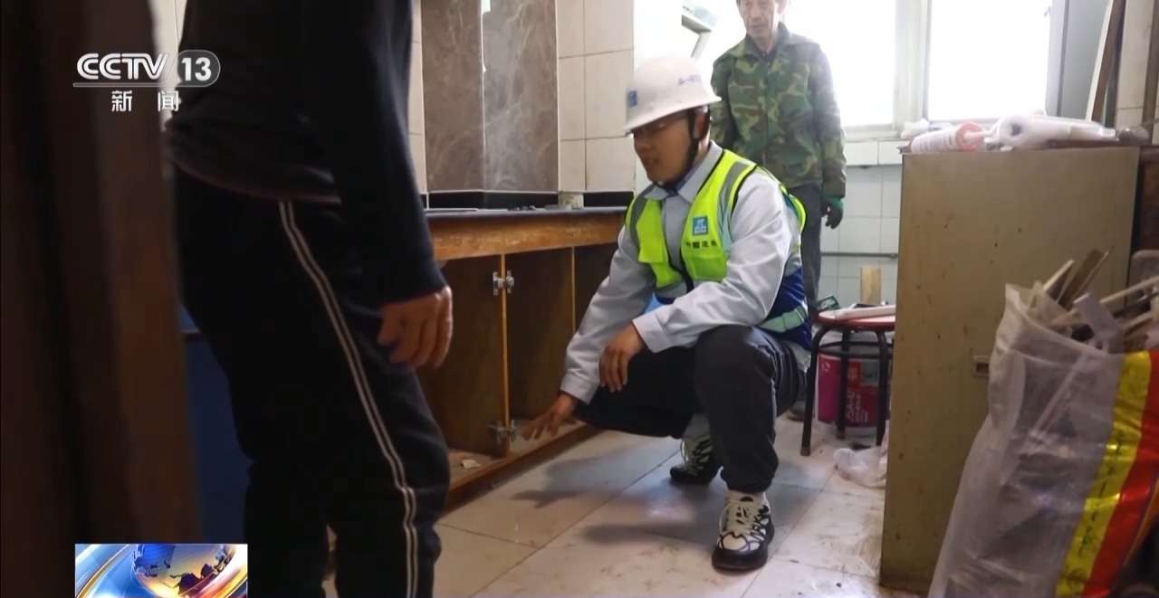 中建二局乔庄北街小区改造项目经理 唐华:部分居民对自家的装修升级改造有一定的精装需求,所以我们在上下水改造期间,创新推出了这种“省心装”的新模式,有偿为有需要的居民提供家装的升级服务。