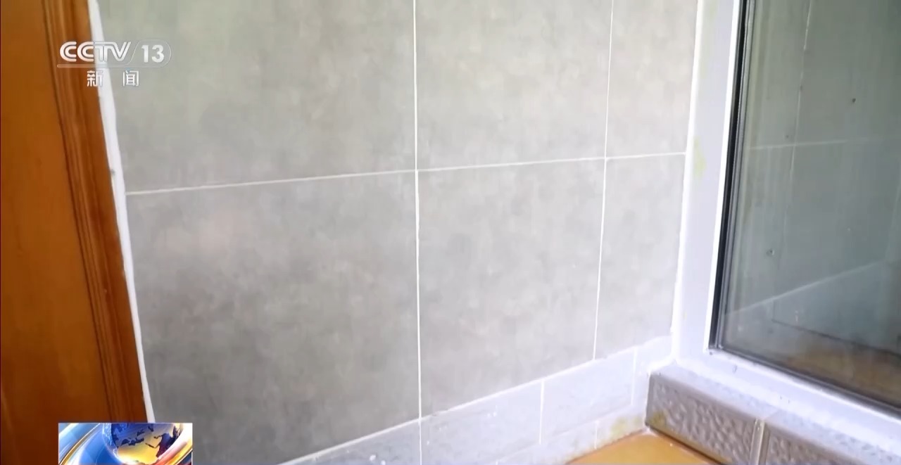 经过现场查看,瓷砖掉落的部位因为年久失修已经空鼓了,随时可能全部掉下来。赵静超决定让工人把阳台的瓷砖全部敲掉重新贴。第二天一早记者再次来到闻阿姨家时,这面墙已经焕然一新。