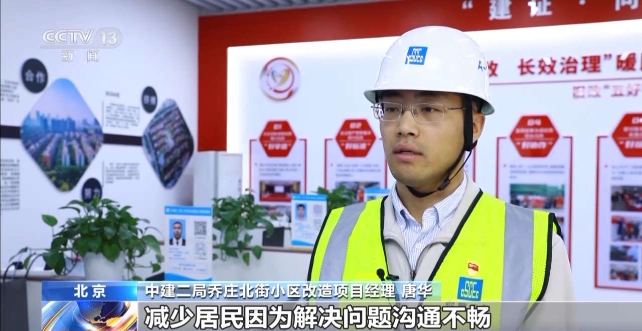 中建二局乔庄北街小区改造项目经理 唐华:借鉴物业式的管理,想出来的这种施工楼栋管家服务模式,减少居民因为解决问题沟通不畅导致的一些投诉。