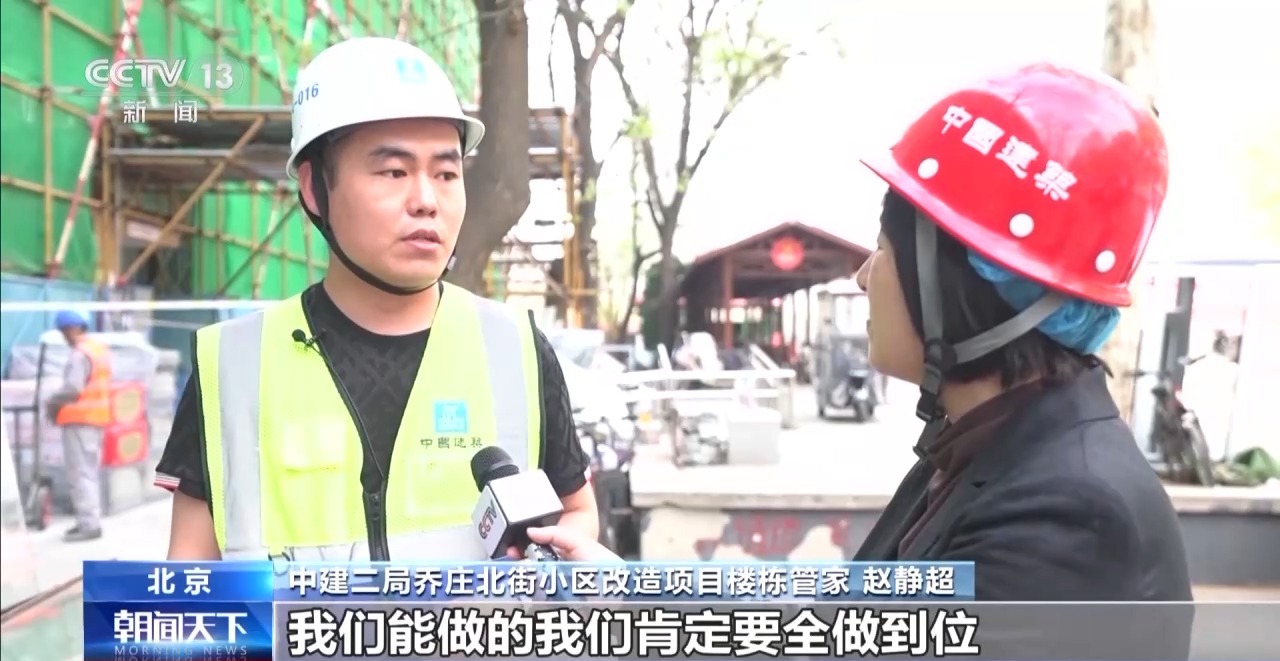 中建二局乔庄北街小区改造项目楼栋管家 赵静超:我就得赶紧过去。业主有诉求,我们能做的肯定要全做到位。国家的惠民政策,我们是执行者,肯定要把这政策落实到居民身上才行。