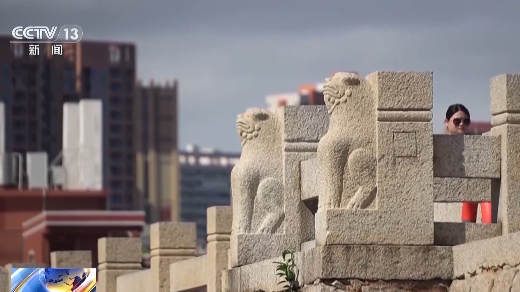 中国海外交通史研究会理事 李国宏:洛阳桥上的栏杆共有525根,其中雕刻有狻猊的是104根。不仅仅具有艺术装饰的作用,也增加了栏杆的配重,让栏杆和桥板结合更加稳固。狻猊的外形像狮子,把它们安放在洛阳桥上,也寄托着百姓希望这座桥长久安稳的一种美好愿景。