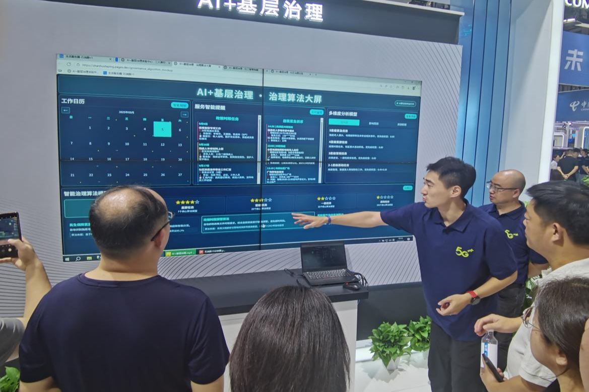 在中国移动展区,记者通过操作AI+基层治理系统,可以查看一个社区的商业、教育、医疗、养老等服务场景和功能,接收居民需求反馈。据工作人员介绍,该项目通过与街道社区合作,打造“15分钟生活圈”综合场景,建成8个高品质生活服务圈,通过资源与需求的智能匹配,按急需建设、质量提升等5类问题建立分类解决机制,让基层治理更接地气,提升基层治理服务效率。