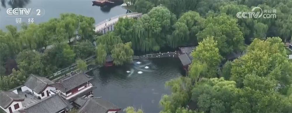 近期雨水充沛,位于山东济南章丘区的百脉泉迎来了丰水期,泉水群中的墨泉汹涌喷发、水势浩大,吸引了大量游客前来拍照打卡。