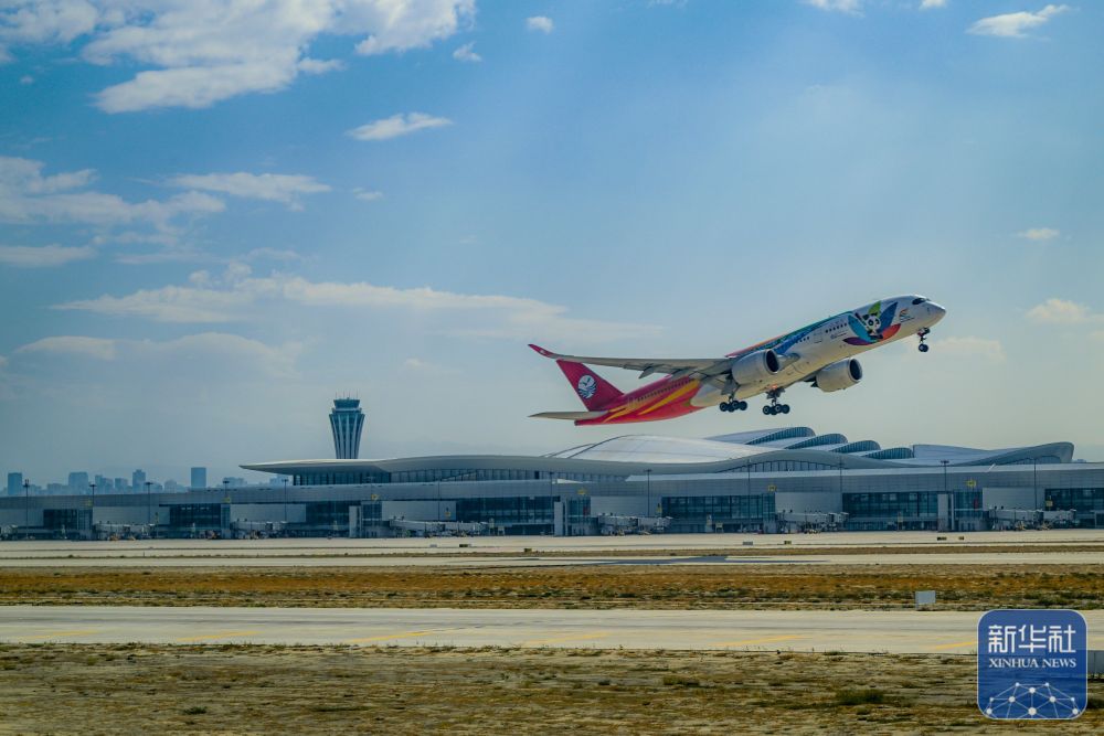 ↑9月15日,一架飞机从乌鲁木齐天山国际机场起飞。