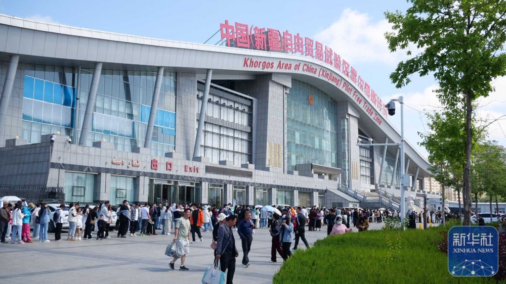 ↑5月2日拍摄的位于新疆伊犁哈萨克自治州霍尔果斯市的中国(新疆)自由贸易试验区霍尔果斯片区。