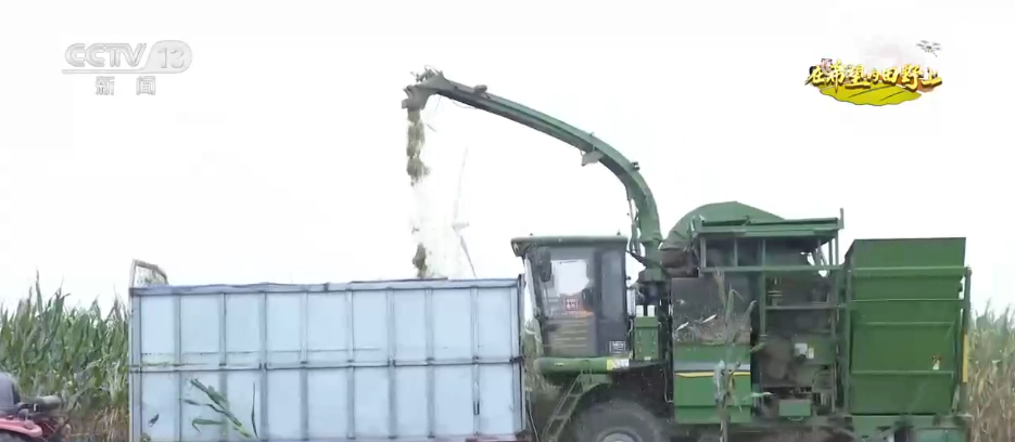 而在距离该玉米地不到10公里的奶牛场里,工人们也正在进行着“收贮”作业。一车车满载青贮饲料的运输卡车陆续将青贮饲料倾倒在固定场地后,进行压实、晾晒、发酵等工艺,历时45天左右,便可成为牲畜的优质“过冬口粮”。