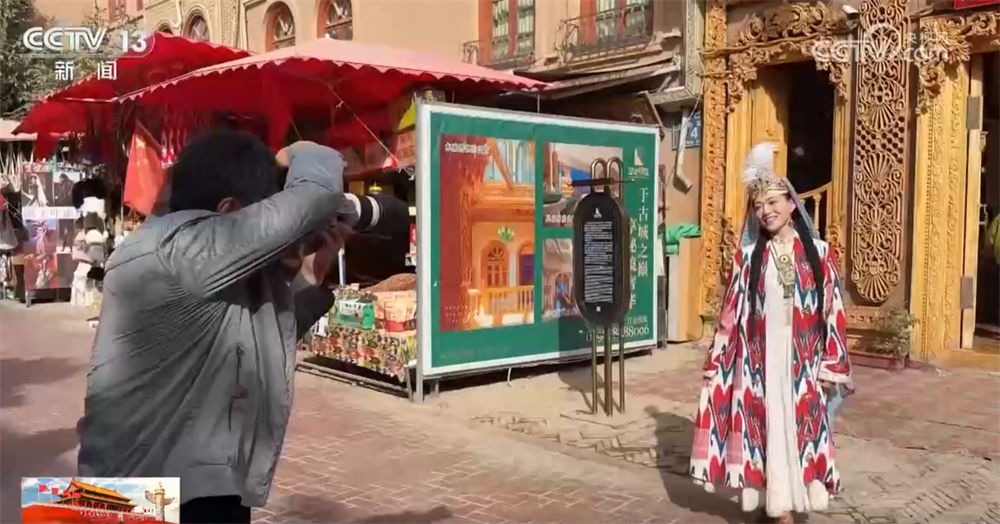 在新疆喀什古城景区,这几天每天都举行开城仪式,迎接来自全国各地的游客。古城街巷里更是挂满了国旗,让人们感受到浓浓的国庆氛围。景区人气火爆也带来商业机遇,身着民族传统服饰的游客随处可见,旅拍摄影师则在一旁记录。