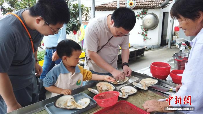 2025年6月,家长与孩子正在进行开蚌取珠体验。曹丹 摄