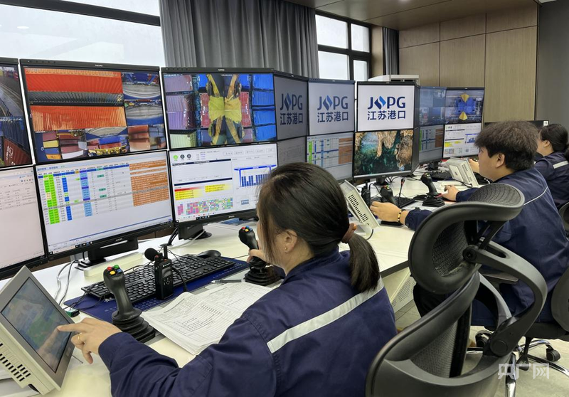 工作人员远程操作集装箱(央广网记者 栾永胜 摄)
