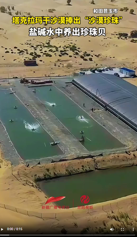 新疆广播电视台/丝路视听讯(记者:张苗)珍珠,这抹诞生于蔚蓝深海的柔光,竟奇迹般地在滚滚黄沙中璀璨绽放!近日,在塔克拉玛干沙漠边的昆玉市,7万颗珍珠贝试养成功。这片不毛之地为何能孕育出象征水之精华的珍珠?答案藏在一项名为“盐碱水生态改良与水产养殖”的科技项目中。当地在盐碱水鱼塘中开展“贝 藻 鱼”立体式养殖。来自各地的优质淡水蚌,正安然地在这片意料之外的“海洋”中,将沙砾的磨砺转化为温润的珍宝。