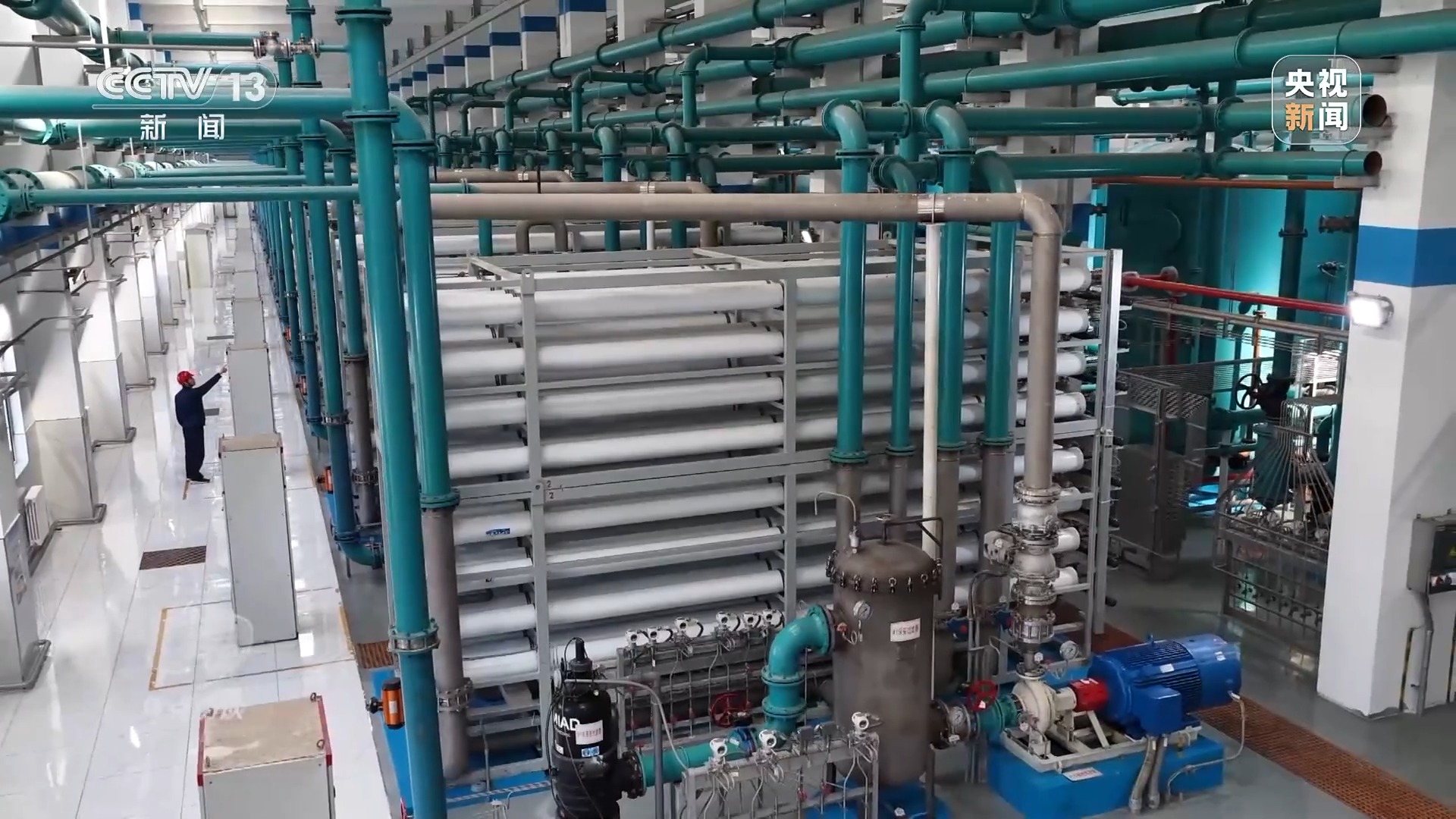 在依海而建的天津南港工业区内,有着目前全国单机规模最大的反渗透海水淡化和综合利用一体化项目。5条生产线,日产量达15万吨,可以满足68万城镇居民的单日用水量,全年可替代、节约淡水资源超过5000万吨。