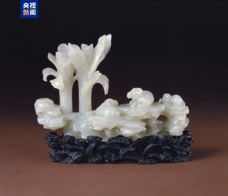 青玉三羊蕉叶双孔笔插,故宫博物院藏。