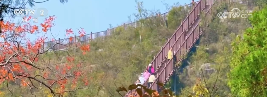 这里新落成的五彩步道全长1300米,沿山脊蜿蜒铺展,如一条绚烂彩带镶嵌于山间,每百米便有一处景致,步移景异。游客既能赏红叶烂漫、览太行雄姿,亦可于登高望远处邂逅一场秋日视觉盛宴。