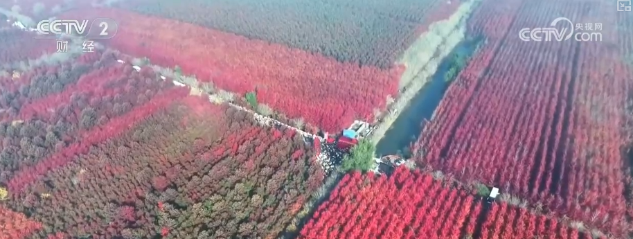 近日,山东莱西的千亩枫叶迎来最佳观赏期,层林尽染的红枫勾勒出乡村的诗意画卷,也带动当地文旅产业发展。