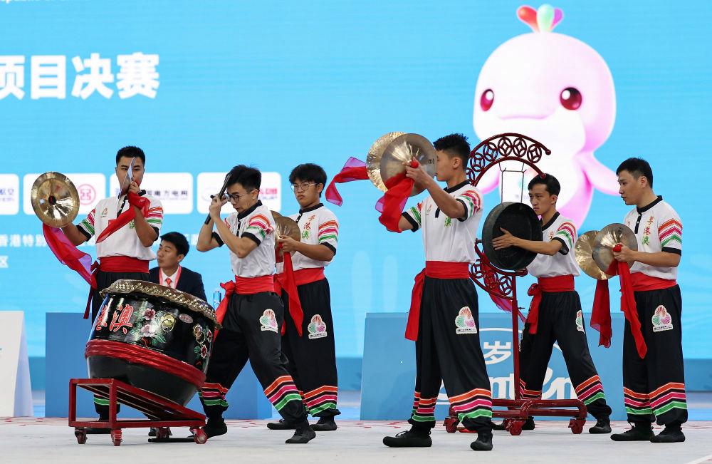 11月11日,粤港澳联队在第十五届全国运动会群众展演舞龙舞狮南狮自选项目决赛比赛中。最终,粤港澳联队获得一等奖。 新华社记者 王鹏摄