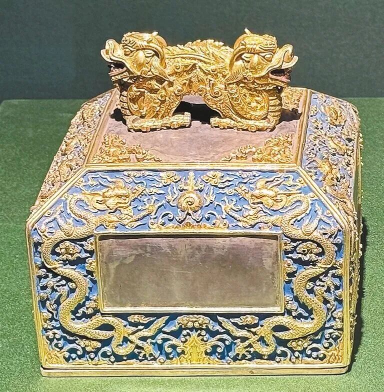 ▲“二十五宝玺”之白玉盘龙纽“大清受命之宝”的宝盝。