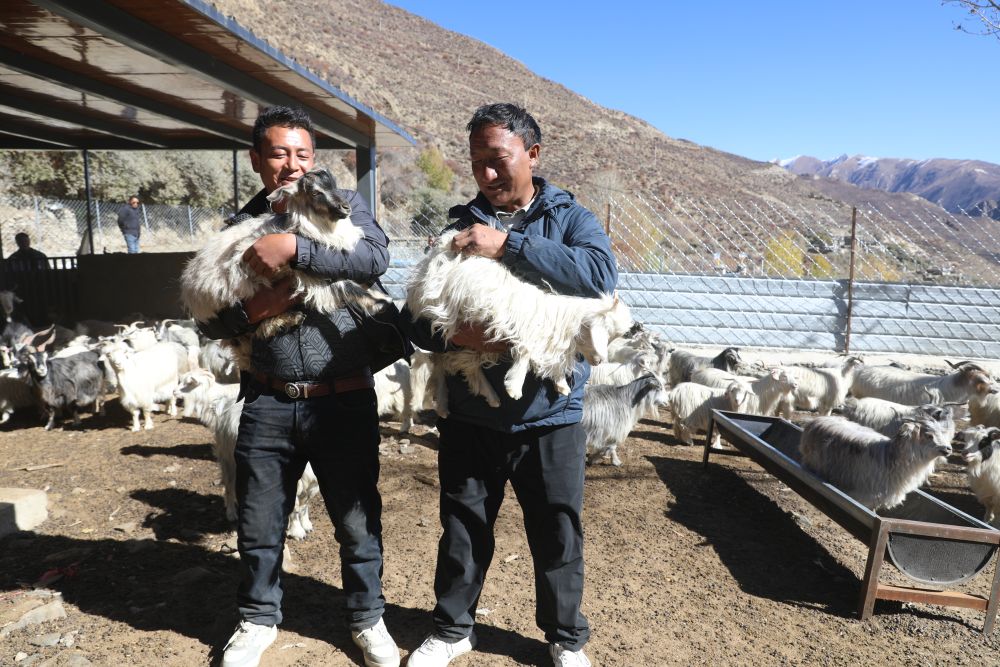 村民在扎嘎新村养殖合作社。新华社发(侯勇 摄)
