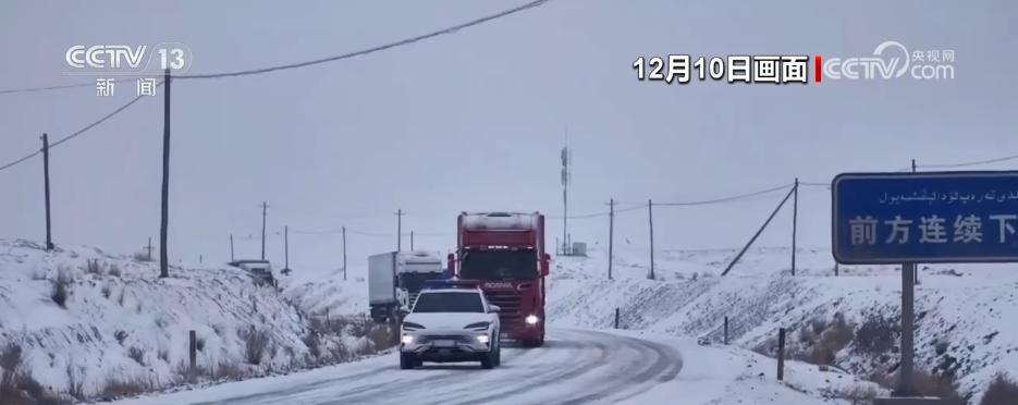 12月9日至10日,新疆克州乌恰县境内的中—吉吐尔尕特口岸遭遇暴风雪,当地边检站立即增派警力、全开通道,为通行车辆提供防滑链及物资补给,引导车辆有序行进,保障跨境物流通道平稳运行。