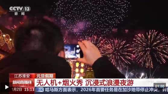 元旦假期,江苏淮安、安徽合肥、河北临漳等地,为延长游玩时间,在夜间推出了不同活动。无人机表演、烟花秀、新春灯会等,让人们在欢乐的氛围中,尽享多彩生活。