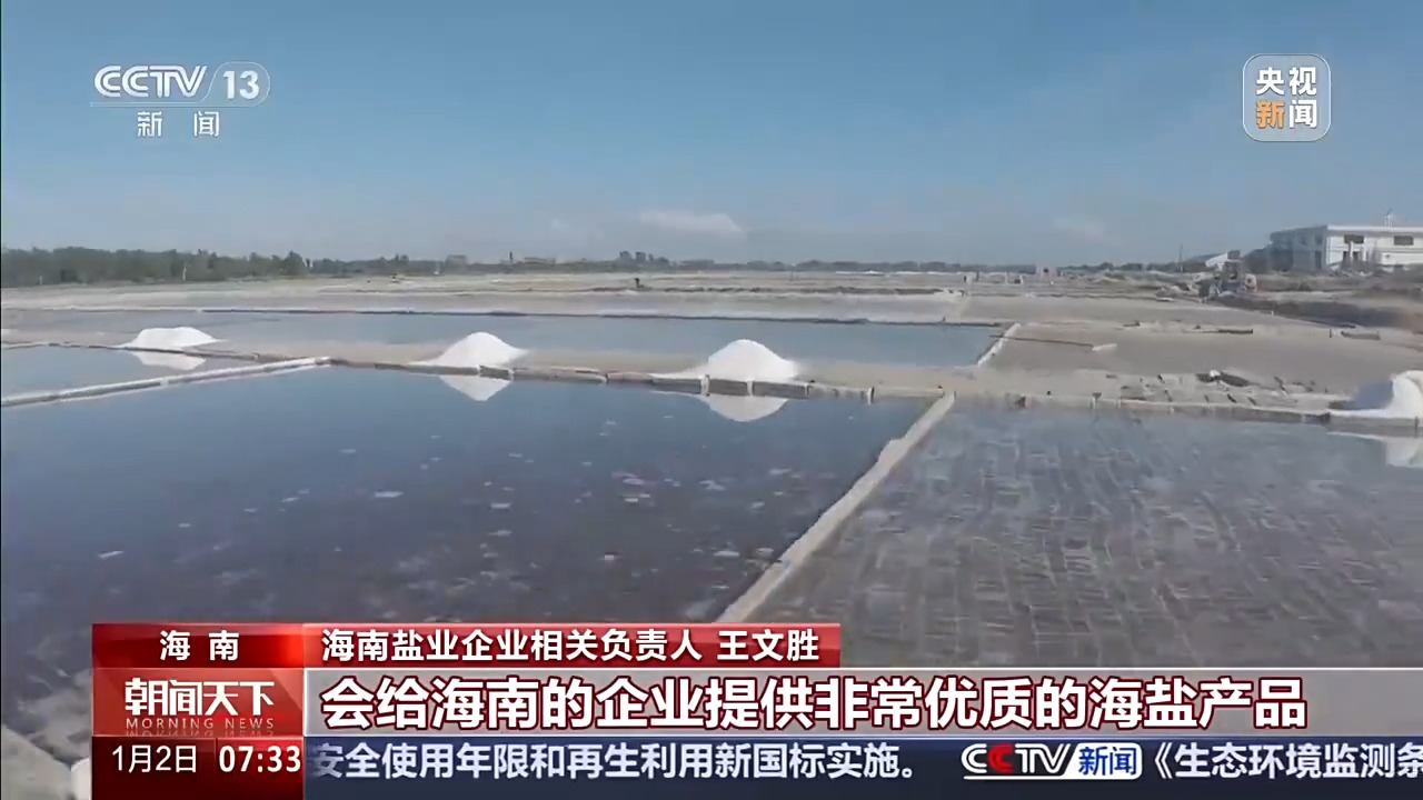 海南盐业企业相关负责人 王文胜:我们现在已经被纳入海南首批自产货物清单企业,现在有4家企业正在合作。第二期整个盐田大概有9000吨的年产量,会给海南的企业提供非常优质的海盐产品。