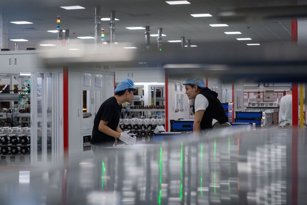 2025年9月22日,工人在新疆巴音郭楞蒙古自治州若羌县的国晟企诚新能源有限公司生产光伏电池片。新华社记者 江文耀 摄
