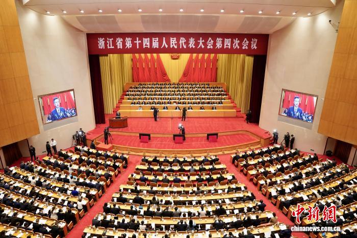1月14日,浙江省十四届人大四次会议在杭州开幕,浙江省省长刘捷作政府工作报告。 张斌 摄