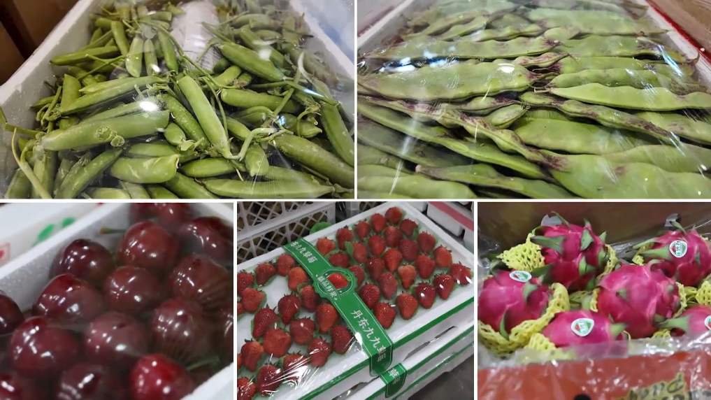盘锦的碱地西红柿、河蟹、大米,丹东东港的蓝莓、草莓,鞍山的南果梨,从这里装车发运,最快在24小时之内就可以抵达南方的餐桌。