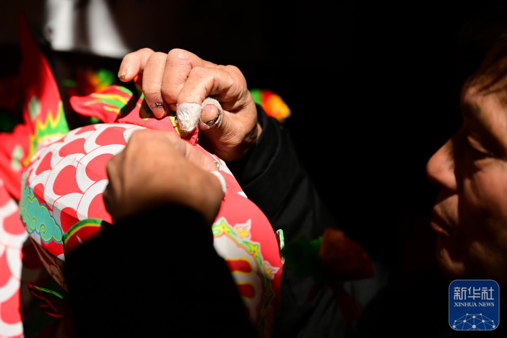 1月29日,瞻淇村的县级非遗项目瞻淇鱼灯代表性传承人汪卓荤在制作鱼灯。