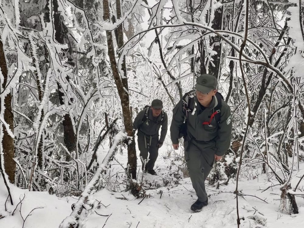 虽已立春,大熊猫国家公园荥经片区依然大雪纷飞。记者从四川雅安荥经县城出发前往大相岭,山下天还晴着,车拐进山路,雾就从沟谷里漫上来;再往上,细雨打着树枝上的冰棱,把山路润得发亮。到了大相岭自然保护区管护中心,车窗外已是白茫茫一片,气温低至零下。