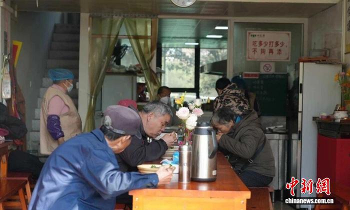 浙江海盐,民众在免费素食馆中用餐。海盐县传媒中心供图